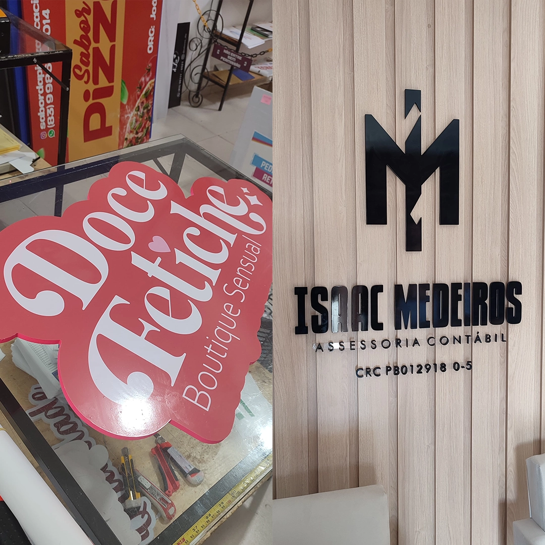 equipamentos, como plotter de impressão, máquinas de recortes em materiais diversos e gravação a laser.